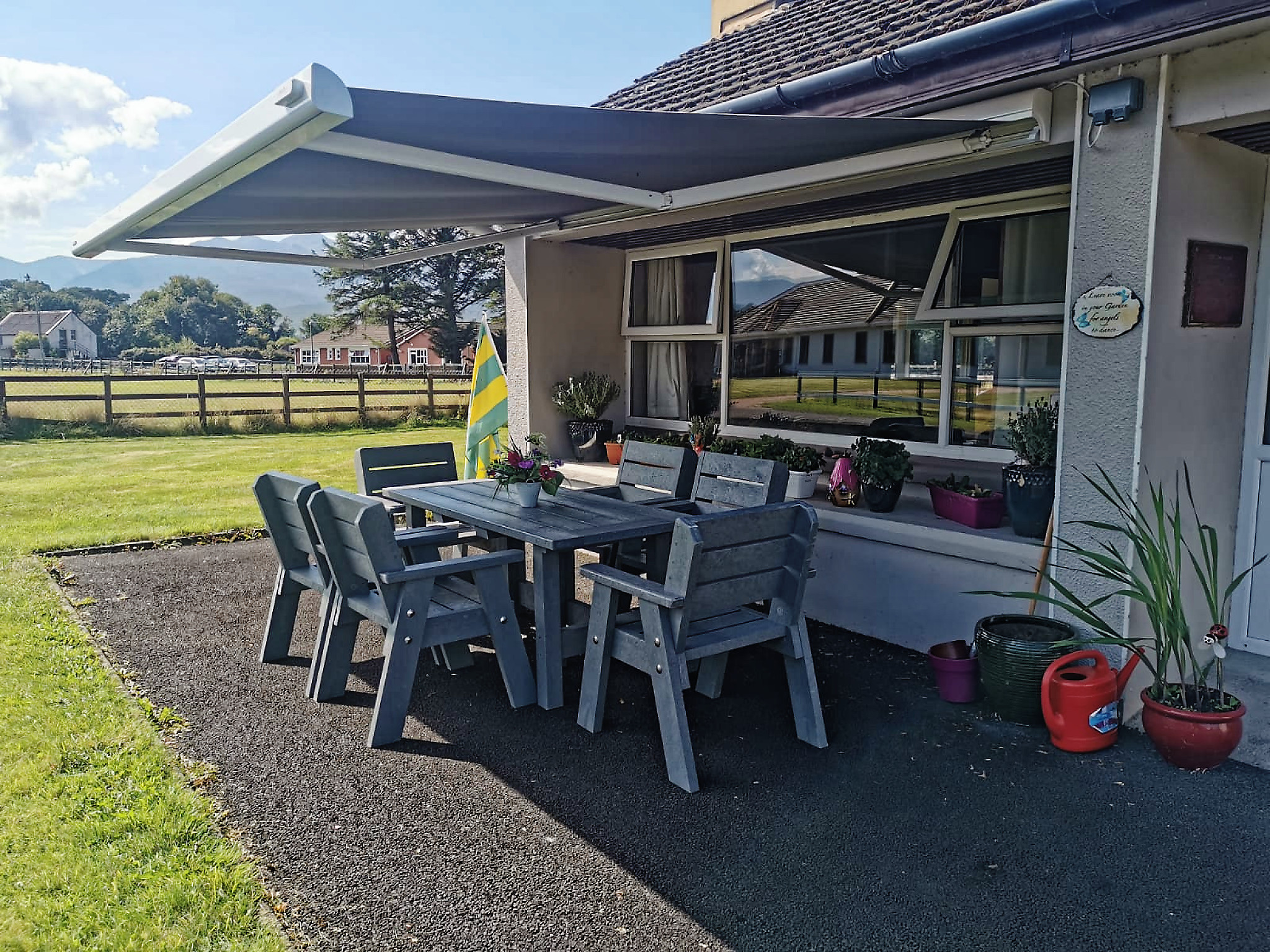 - We purchased new sturdy outdoor furniture for The Chalets, see photos at top of this page.