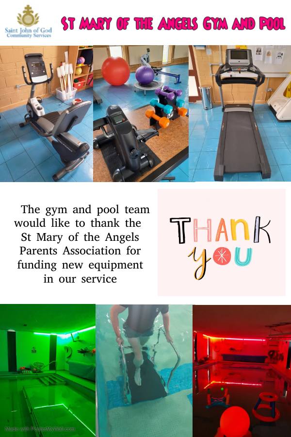 - We have donated a substantial amount of new equipment for the gym and sensory pool areas, pictures at top of this page.