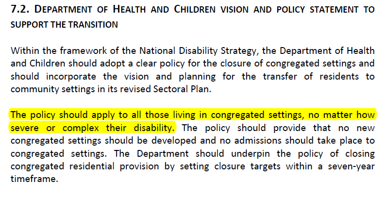 The terms of the national policy clearly outlined in the HSE’s 2011 report ‘Time to Move on From Congregated Settings’ tell a different story: