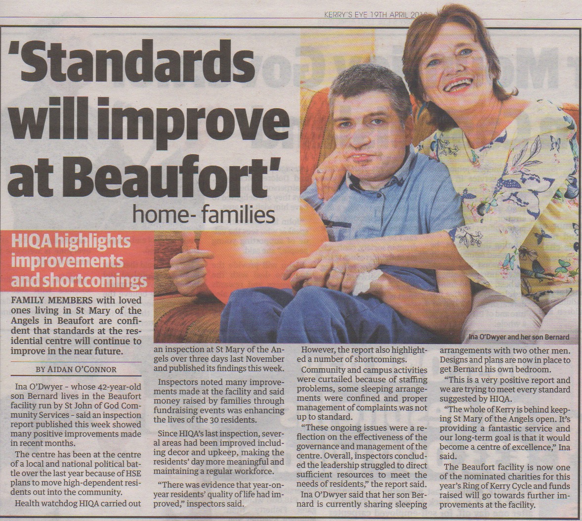 - The Kerryman: Funding boost for St Mary of the Angels, Beaufort facility gets top prize in Aviva-run Community Awards Fund, 10th April 2019