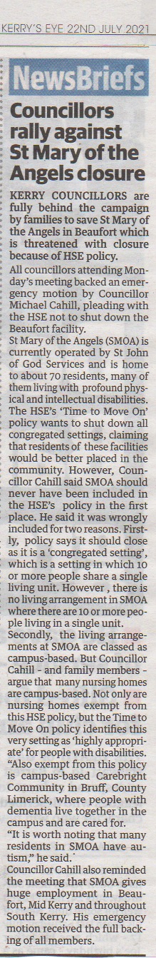 - The Kerryman: St Mary of the Angels' future hangs in the balance with plea for facility to be kept, 28th July 2021